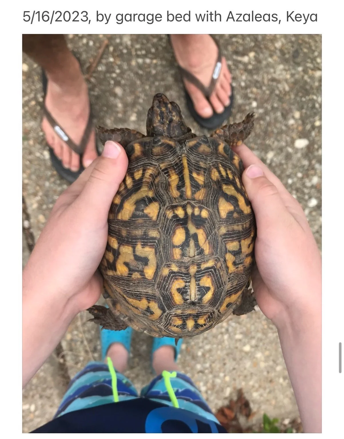 We never touch or handle the turtles unless it’s absolutely necessary for their safety — such as gently moving one off the driveway or rescuing a hatchling from the lawn when hawks or crows are nearby.